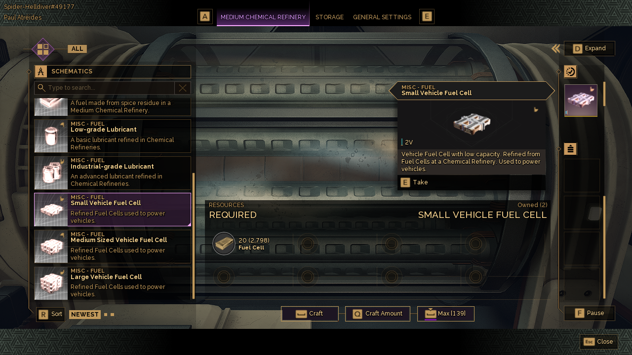 Small Vehicle Fuel Cell Craft (Medium Chem Refinery)