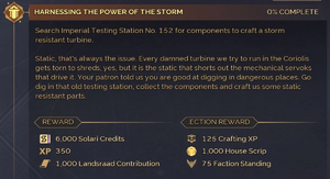 To obtain Offworld Regis Compounds, you must first acquire 'House Scrip'. Every new Landsraad Mission that you complete and receive the 'Recollection Reward' for, will award 1,000 House Scrip. Note that you are limited to five additional 'Recollection Rewards' per day, but unused Rewards stack up to 35 total.