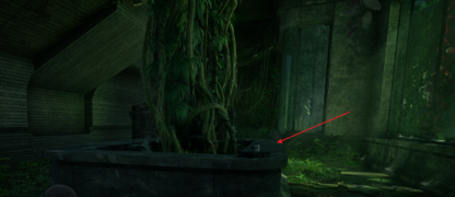 The first tape is found in one of the first overgrown halls, on a table.