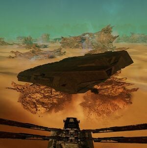 The Tartarus is a small Shipwreck in the Sheol. Like most shipwrecks and a large part of the Sheol, it is subject to the Right of Salvage and has PvP enabled. There are Scavengers in the surrounding area, wearing radiation suits, have shields and are tough to kill.